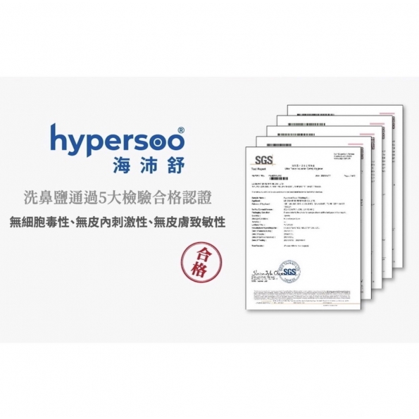 ■ 海沛舒洗鼻鹽 通過台美、SGS 5 大檢驗合格認證。