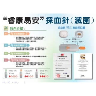 醫療器材許可證所載品名:"睿康易安"採血針(滅菌)